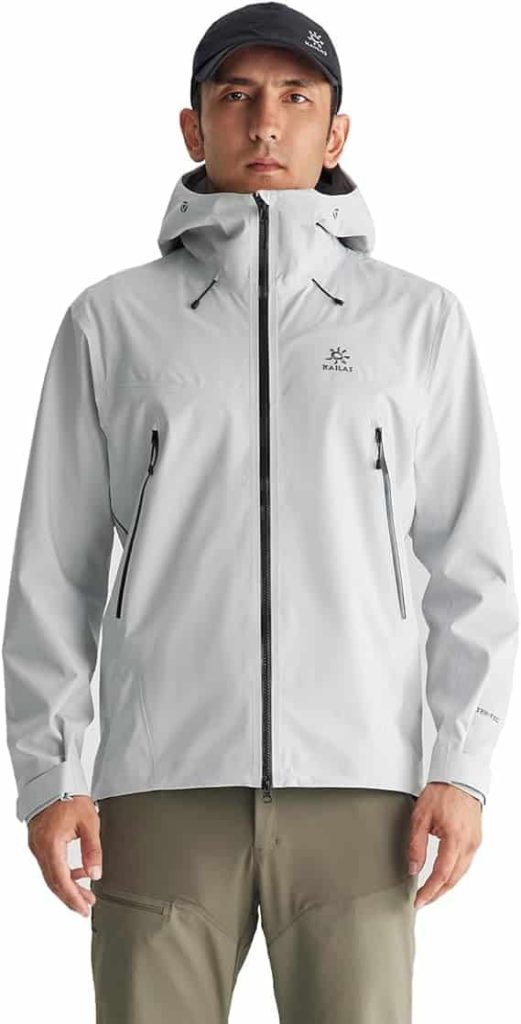 A fully waterproof, windproof, and breathable outer layer designed to shield you from rain, snow, and wet conditions. Look for features like taped seams, a storm hood, adjustable cuffs, and durable construction. It should fit comfortably over insulating layers without restricting movement—essential for staying dry on the trail and summit.
