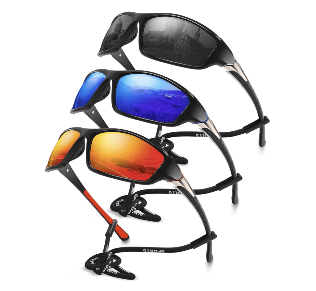 High-quality sunglasses with 100% UV protection and side shields to block intense sunlight and glare at high altitude.